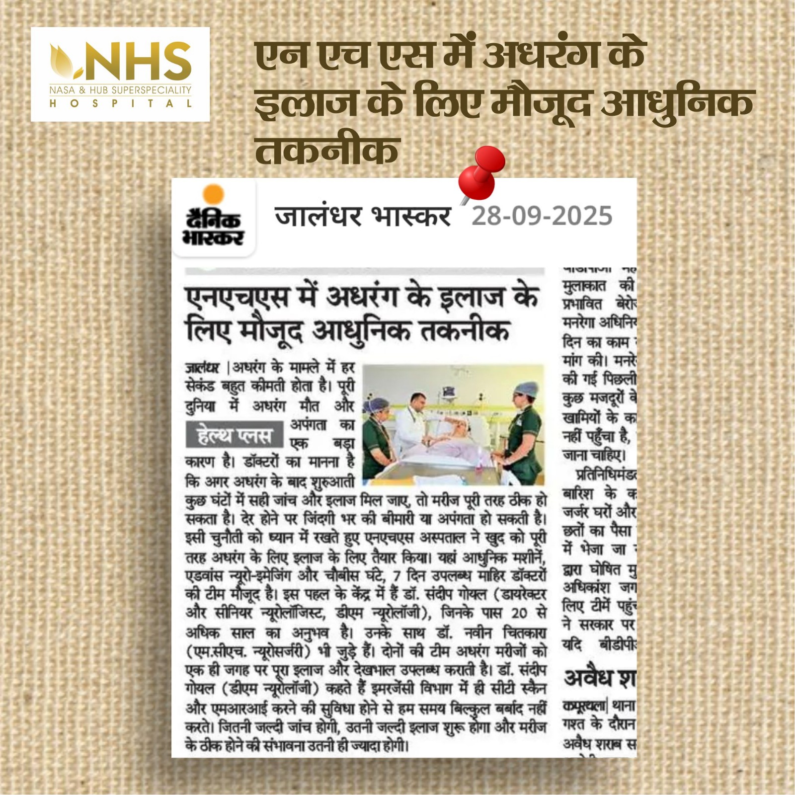 NHS Hospital, Near Sports College, 300m From Kapurthala Chowk, Jalandhar, Punjab, India. Pin code : 144008